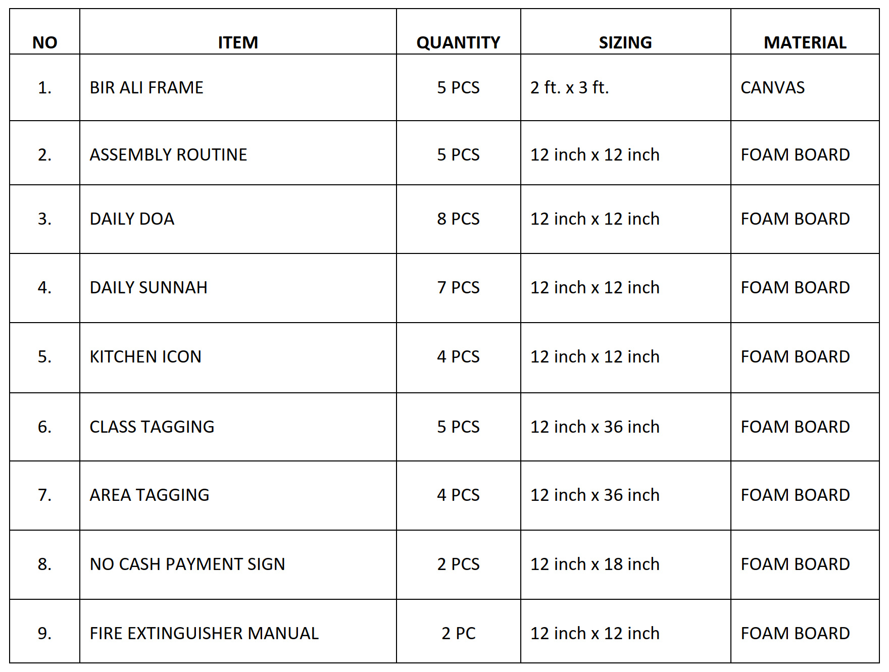1. BIR ALI FRAME x 5 PCS