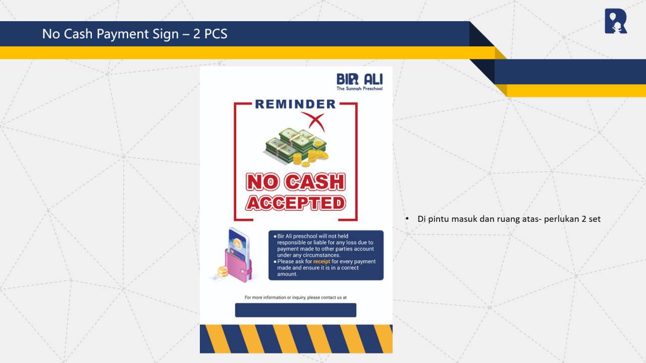 8. NO CASH PAYMENT SIGN x 2 PCS